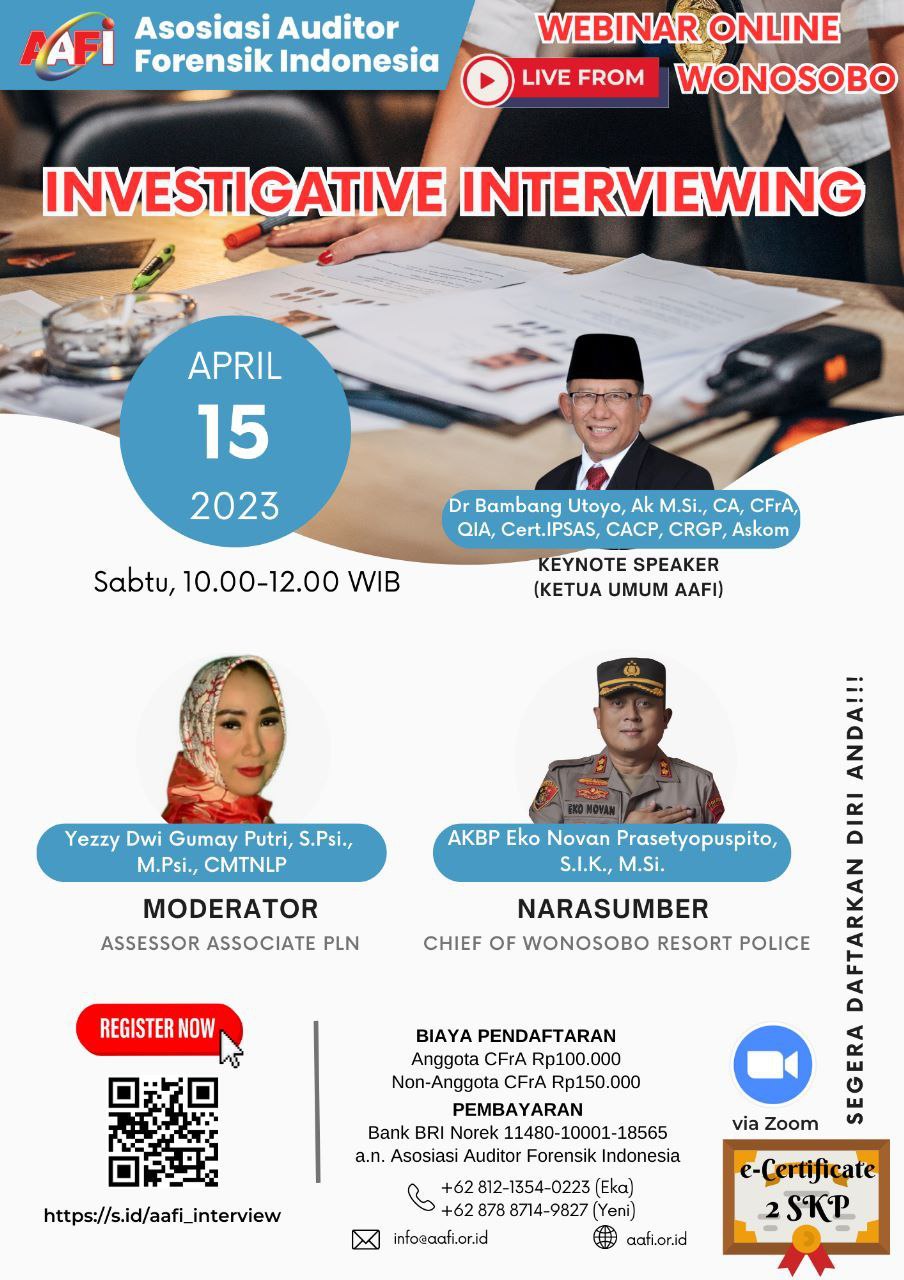 Asosiasi Forensik Auditor Indonesia (AAFI EKAPAME) mengundang Bapak/Ibu dalam Webinar Online dengan Tema INVESTIGATIVE INTERVIEWING